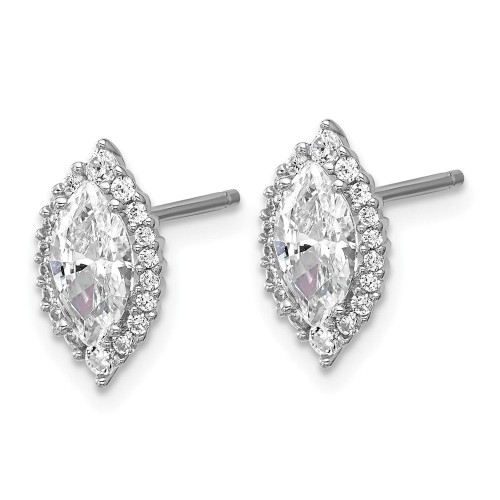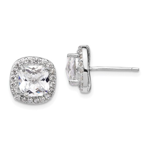 Cheryl M Sterling Silver Rhodium-plated Rose-cut and Brilliant-cut CZ Square Halo Post Earrings