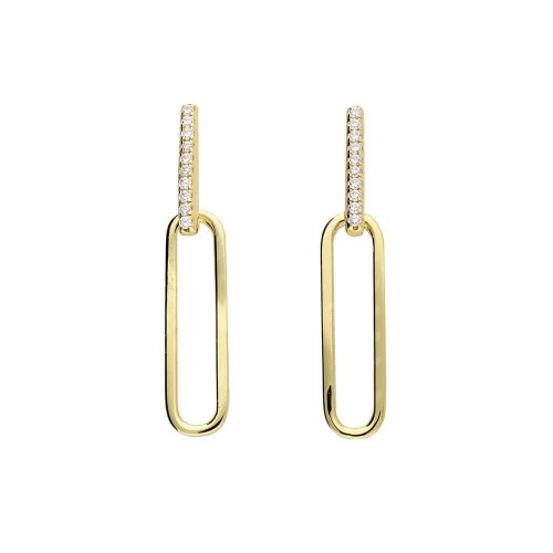 GOLD ON SILVER CUBIC ZIRCONIA BAR & PAPERCLIP LINK DROP EARRINGS