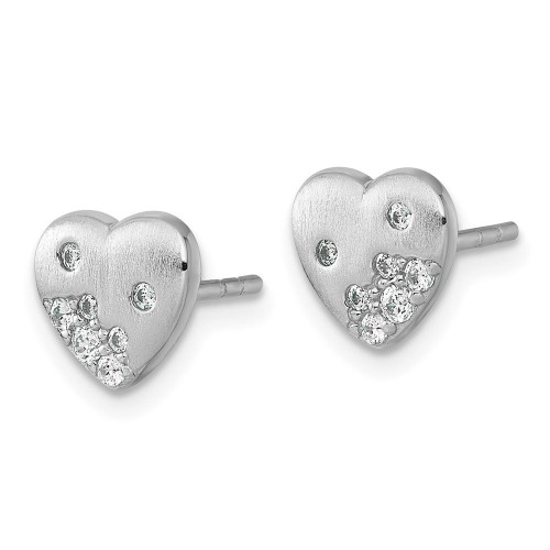 Sterling Silver Rhodium-plated Brushed CZ Heart Post Earrings