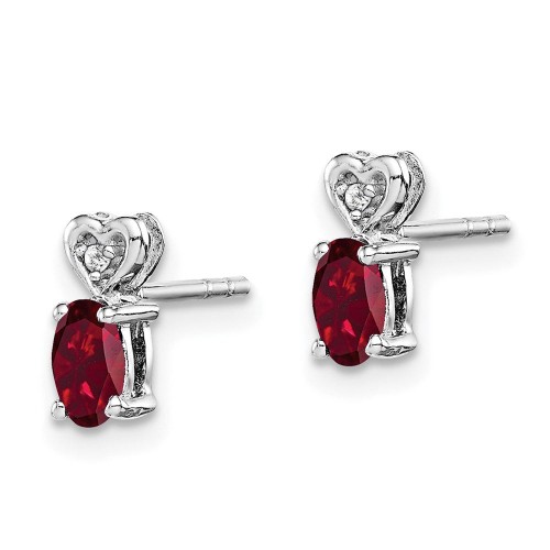 Sterling Silver Rhodium-plated Created Ruby & Diam. Earrings