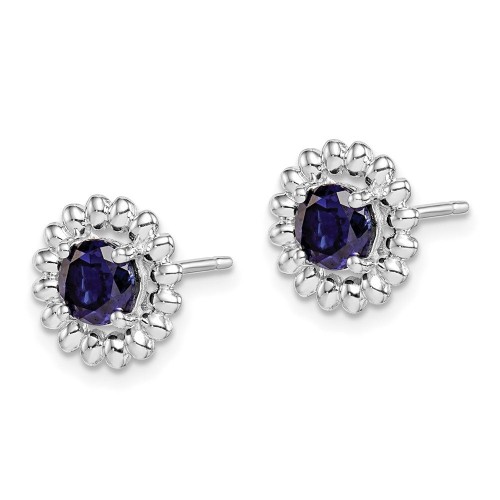 Sterling Silver Rhodium-plated Created Sapphire & Diam. Earrings