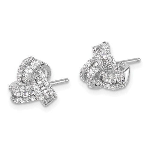 Sterling Silver Rhodium-plated CZ Heart Claddagh Post Earrings