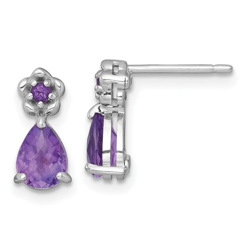 Sterling Silver Rhodium-plated Polished Amethyst and Green Quartz Leaf Post Earrings