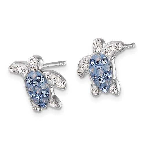 Sterling Silver Rhodium-plated Polished Blue Created Opal Polished Turtle Post Earrings