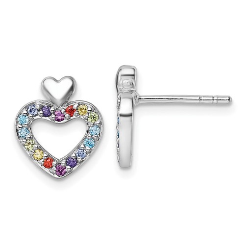 Sterling Silver Rhodium-plated Polished Rainbow Enameled Heart Children’s Post Earrings