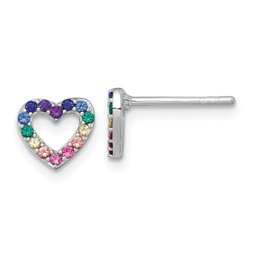 Sterling Silver Rhodium-plated Polished Rainbow Nano Crystals Heart Shape Childrens Post Earrings