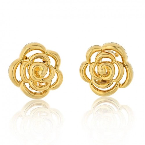 Van Cleef & Arpels 18K Yellow Gold 1998 Openwork Flower Blossom Earrings