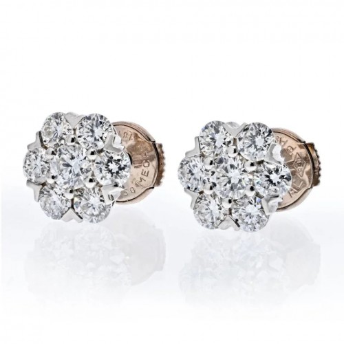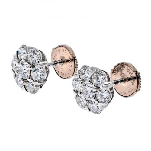 Van Cleef & Arpels 18K White Gold Lotus Diamond Medium Model Earrings