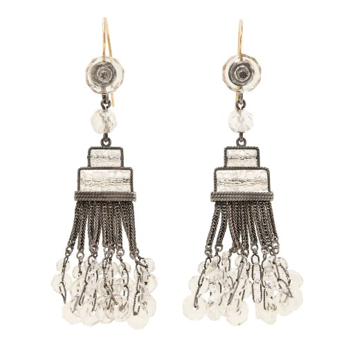 Art Deco Sterling Silver Rock Quartz Crystal Chandelier Earrings