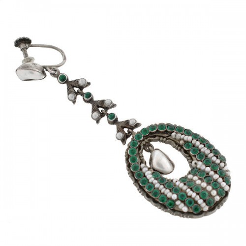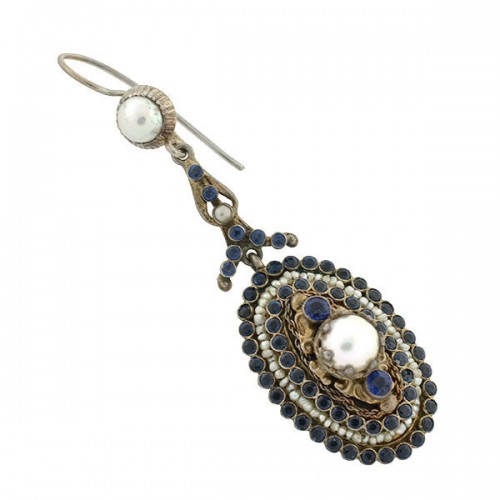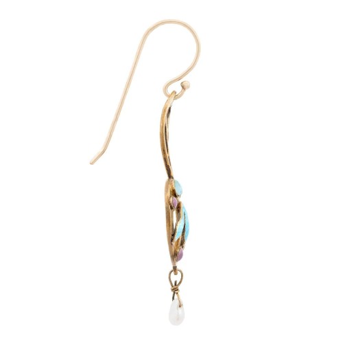 Art Nouveau Silver Gilt Opal and Pearl Enameled Dangle Earrings
