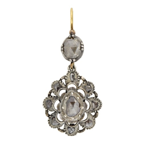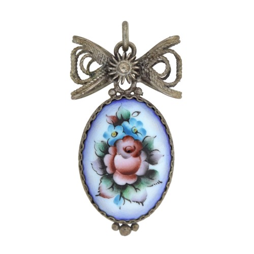Art Deco Sterling Hand-Painted Porcelain Earrings + Pendant Set