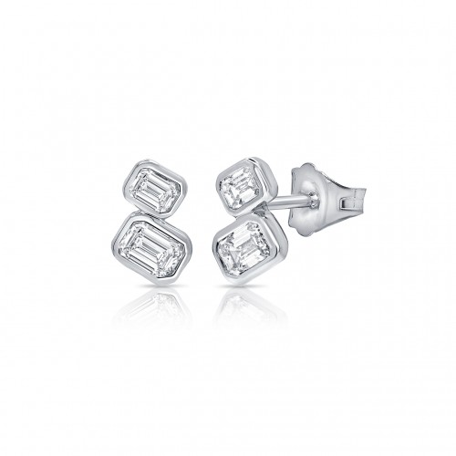 14k White Gold and Emerald Cut Diamonds .68 Total Weight Studs