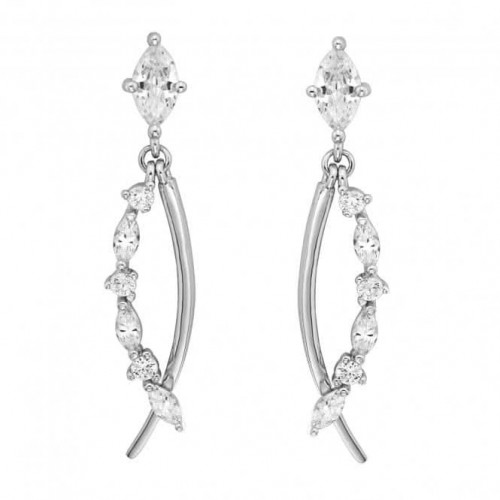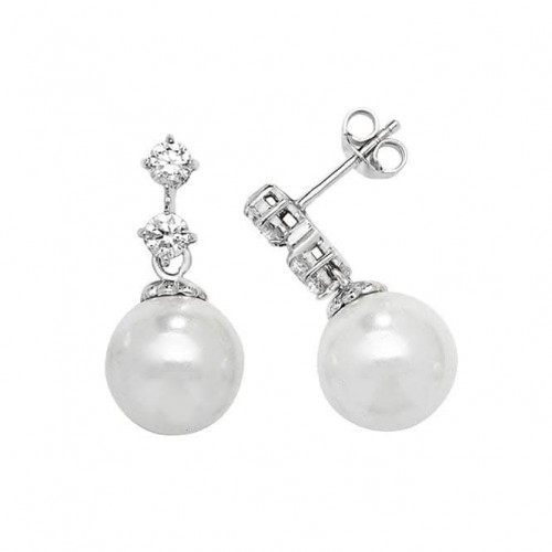 Acotis Silver Drop Earrings with Zirconia & Pearl Accents G51180