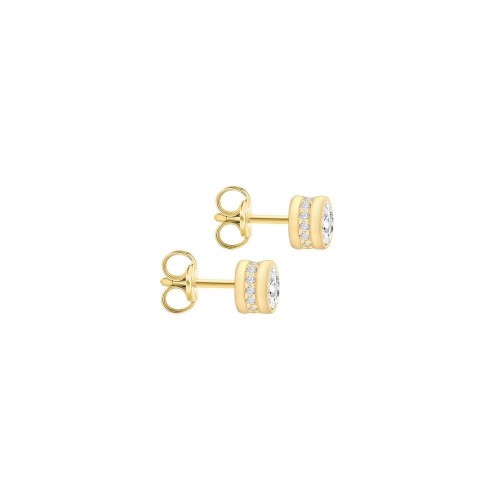 9CT YELLOW GOLD CZ AND DOUBLE-BAND 9.6MM X 10.6MM STUD EARRINGS