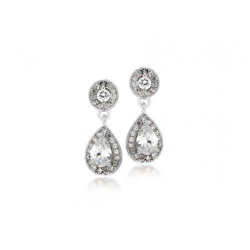 STERLING SILVER RHODIUM PLATED CZ 7MM X 17MM TEARDROP EARRINGS