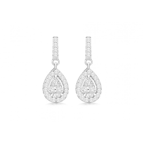 STERLING SILVER RHODIUM PLATED CZ 7MM X 20MM TEARDROP EARRINGS