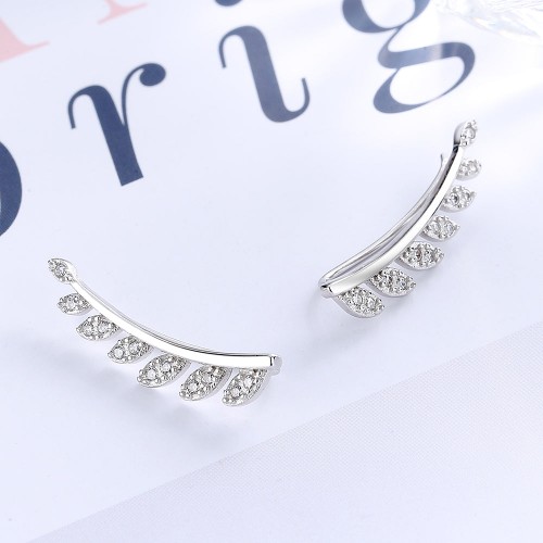 Sterling Silver Crystal Leaf Climber Earring Sterling Silver