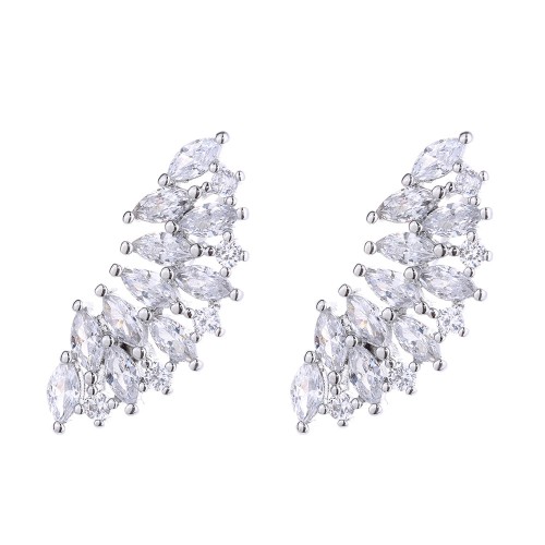 Sterling Silver Double Halo Omega Stud Earrings Sterling Silver