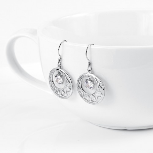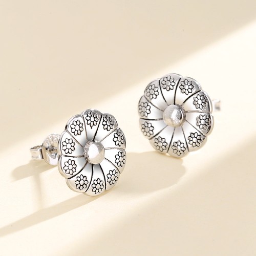 Sterling Silver Double Halo Omega Stud Earrings Sterling Silver