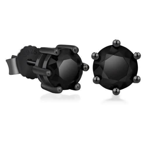6mm Black Diamond Round Stud Earrings in White Gold by Bling Proud | Urban Jewelry Online Store S925