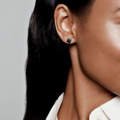 925 Sterling Silver Black Square Stud Earrings by Bling Proud | Urban Jewelry Online Store S925