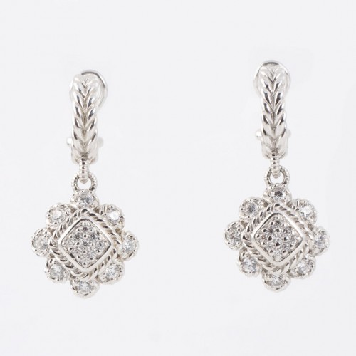 Judith Ripka 925 Silver Dangle Twisted Hoop Earrings (12.29g.)