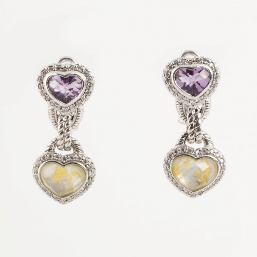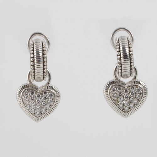 Judith Ripka 925 Silver Cubic Zirconia Dangle Heart Earrings (13.58g.)
