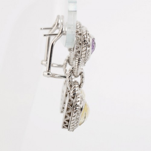 Judith Ripka 925 Silver White Crystal Dangle Earrings (14.78g.)