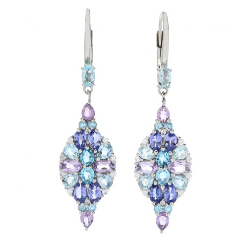 Claire Vessot Designs 4.51ctw Multi Gemstone Floral Inspired Drop Earrings Platinum Plated