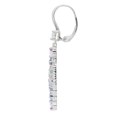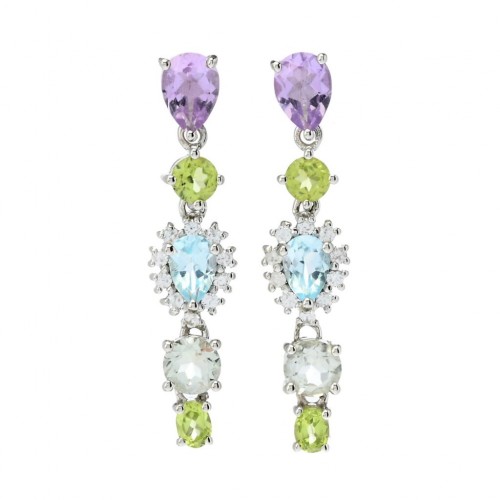Claire Vessot Designs 4.51ctw Multi Gemstone Floral Inspired Drop Earrings Platinum Plated