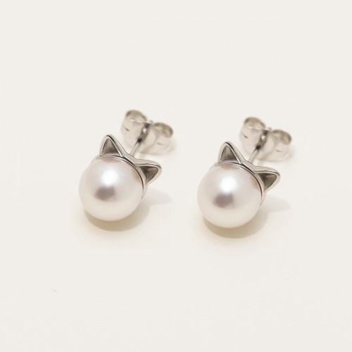 Cultured Freshwater Pearl Cat Earrings in 14kt Yellow Gold (5mm pearls) CSER00390