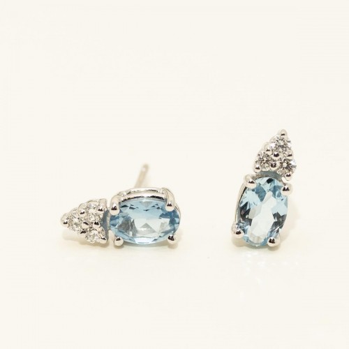 Oval Aquamarine Stud Earrings in 14K White Gold with Diamonds (1/10ct tw ) CSER00712