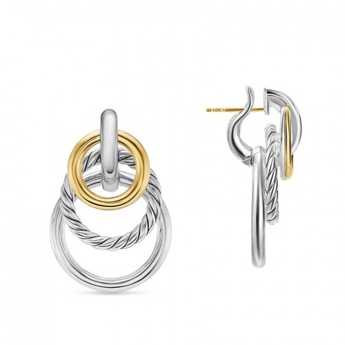 DY Mercer Multi Hoop Earrings in Sterling Silver with 18K Yellow Gold and Pavé Diamonds