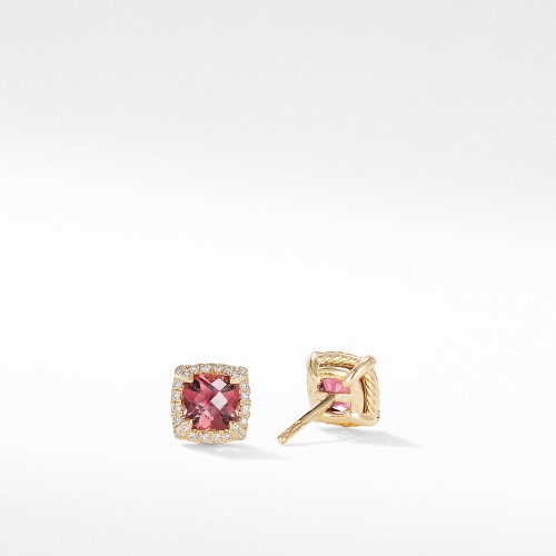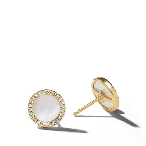 Petite DY Elements Stud Earrings in 18K Yellow Gold with Mother of Pearl and Pavé Diamonds