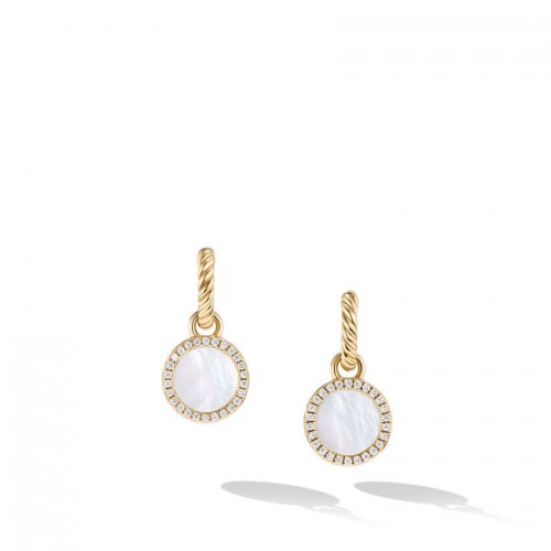 Petite DY Elements Drop Earrings in 18K Yellow Gold with Mother of Pearl and Pavé Diamonds