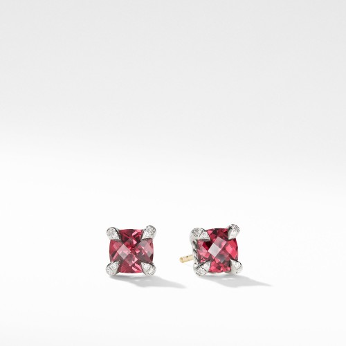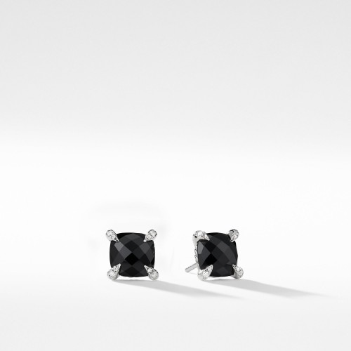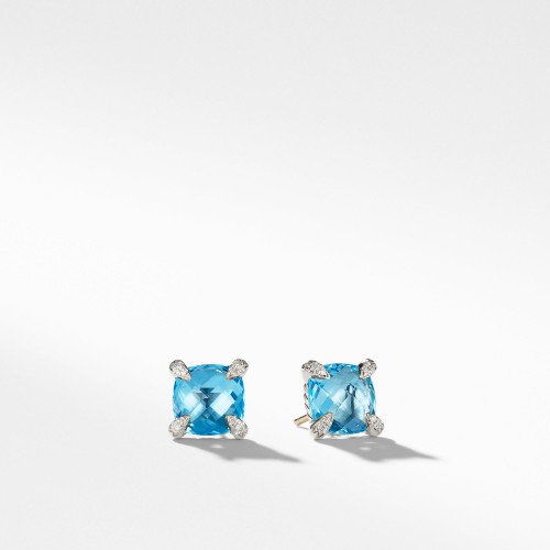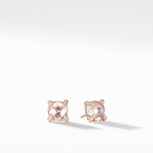 Châtelaine® Pavé Bezel Stud Earring with Champagne Citrine and Diamonds in 18K Gold, 8mm