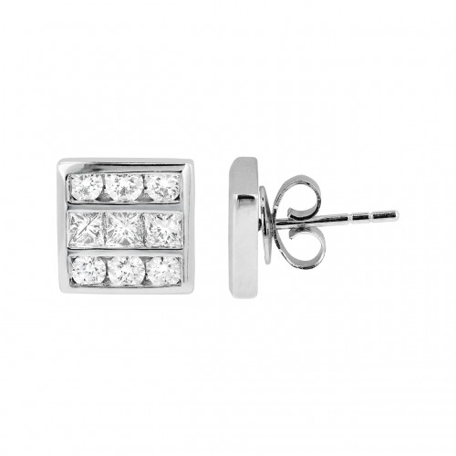 18k Gold Princess and Diamond 1.10 Total Weight Channel Studs