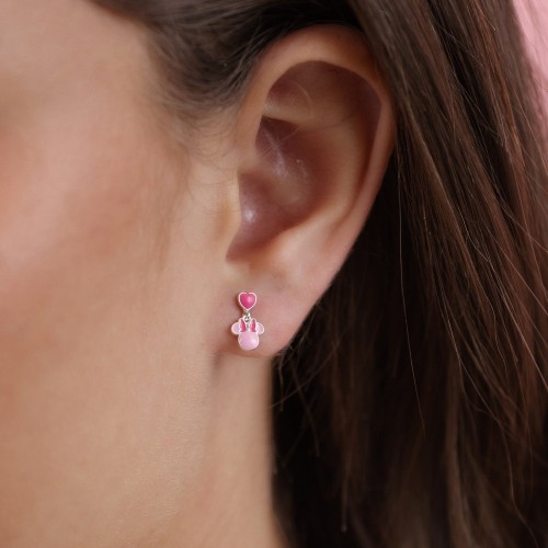 Disney Mickey & Minnie Sterling Silver Mouse Pink Enamel Fill Love Heart Drop Earrings ES00111SL PH