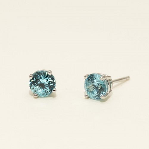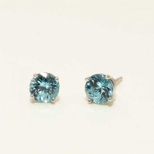 Cushion Cut Montana Sapphire Halo Earrings in 14kt White Gold with Diamonds (1/4ct tw) CSER01188