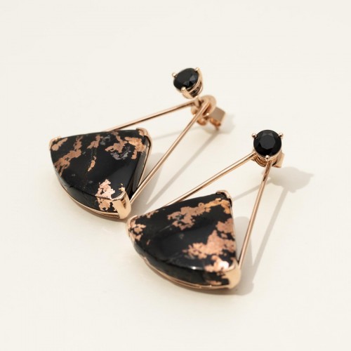 Black Onyx with Copper Plumes and Black Spinel Drop Earrings in 14k Rose Gold CSER00820