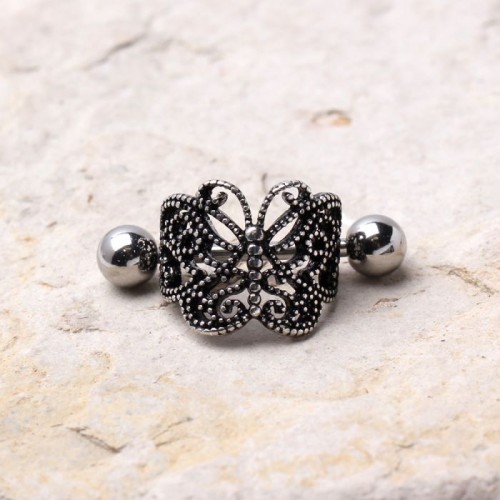 316L Stainless Steel Medieval Design Heart Crown Cartilage Cuff Earring by Fashion Hut Jewelry