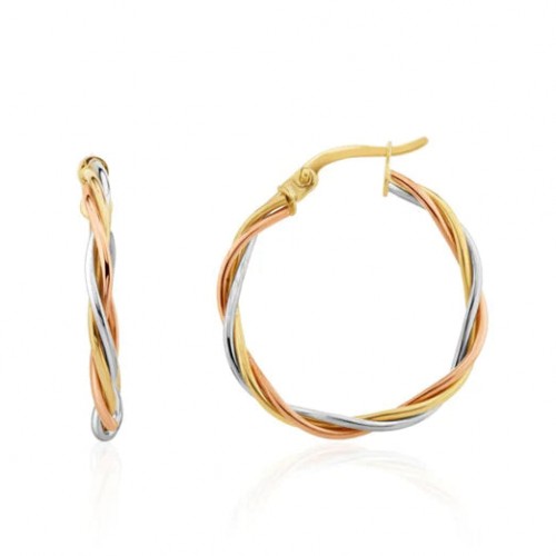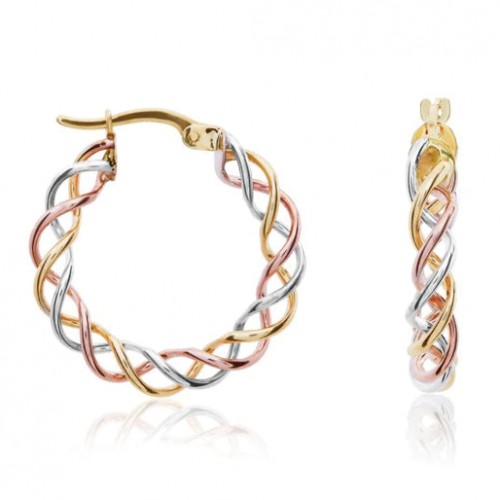 Three Tone 9CT Gold Wire Twist Hoop Earrings