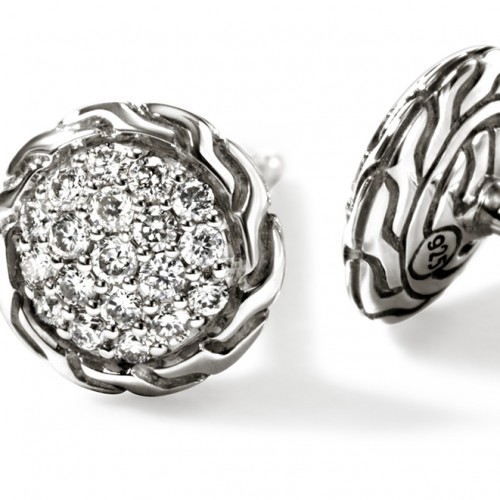 John Hardy Essentials Small Square Pave Diamond Silver Earrings