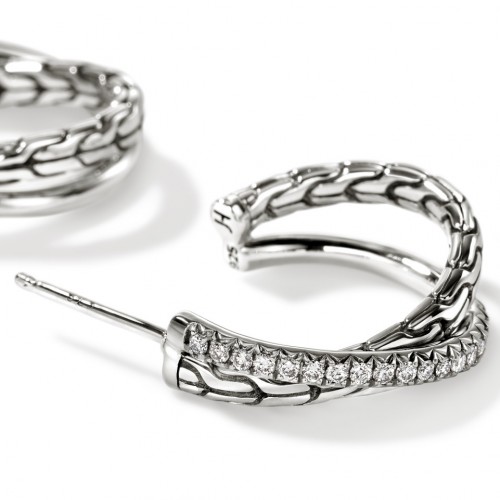 John Hardy Essentials Silver Medium Hoop Earrings with Full Closure