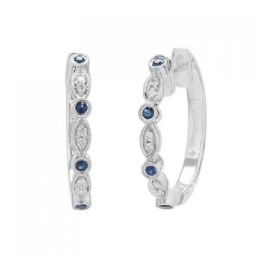 Princess Cut Multicolor Sapphire Hoop Earrings in 14kt White Gold with Diamonds (3/8ct tw) CSER00997