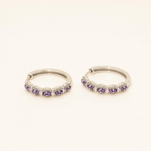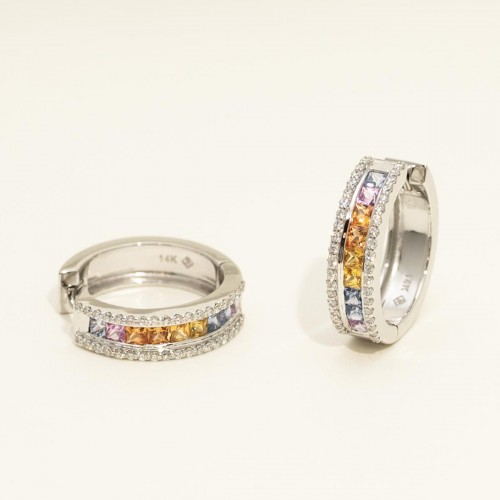 Princess Cut Multicolor Sapphire Hoop Earrings in 14kt White Gold with Diamonds (3/8ct tw) CSER00997