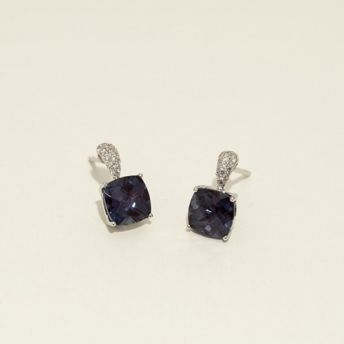 Cushion Cut Created Alexandrite Drop Earrings in 14kt White Gold with Diamonds (1/7ct tw) CSER00898