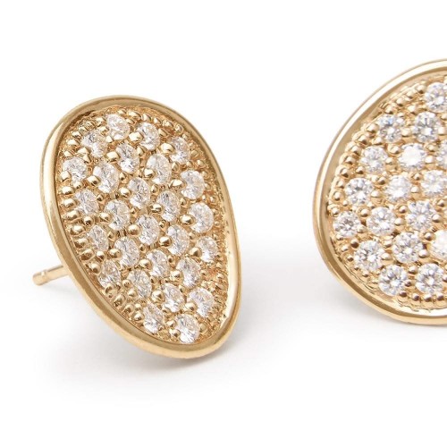 Marco Bicego Lunaria 18K Yellow Gold Hand-Engraved Two Element Dangle Earrings with Diamonds