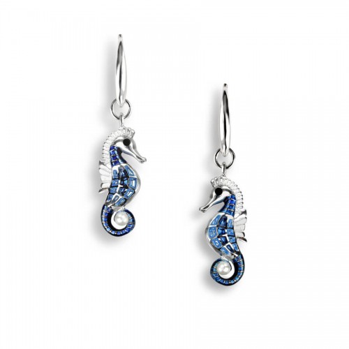 Nicole Barr Silver Seahorse Blue Earrings
