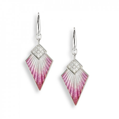 Nicole Barr Silver Pink Art Deco Wire Earrings with White Sapphire